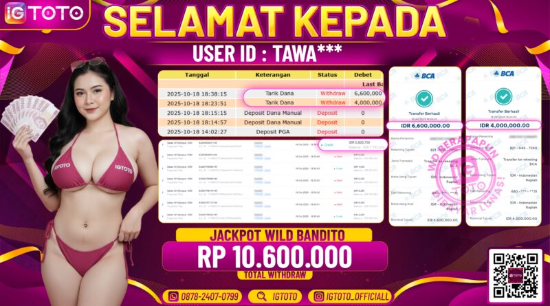 Read MoreBUKTI JACKPOT IGTOTO– Selamat kepada member setia IGTOTO ID : TAWA*** dengan Jackpot Rp. 10.600.000,- pada permain slot games igtoto .