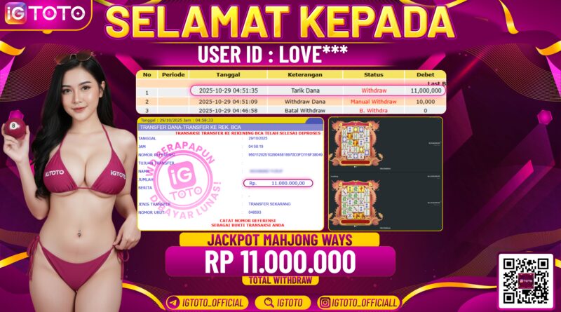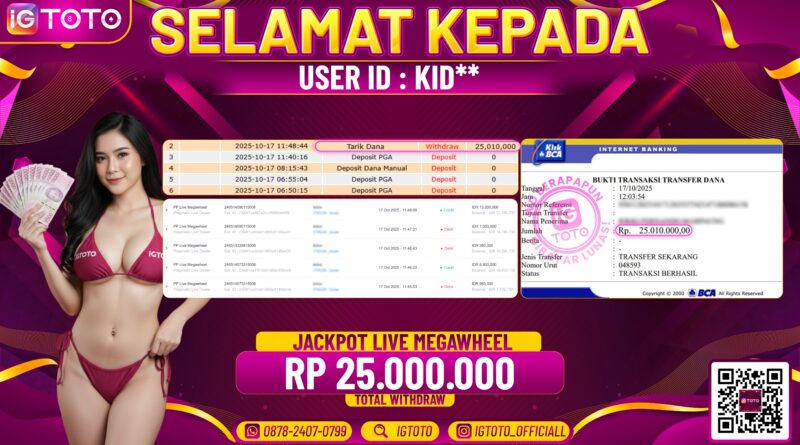 Read MoreBUKTI JACKPOT IGTOTO– Selamat kepada member setia IGTOTO ID : KID** dengan Jackpot Rp. 25.000.000,- pada permain slot games igtoto .
