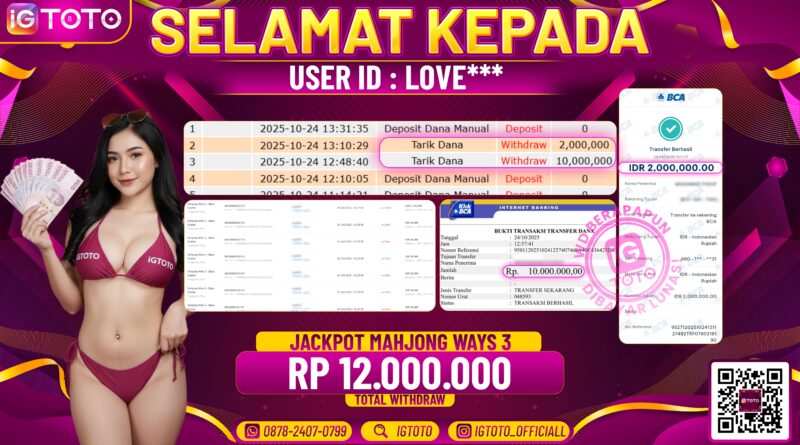 Read MoreBUKTI JACKPOT IGTOTO– Selamat kepada member setia IGTOTO ID : LOVE*** dengan Jackpot Rp. 12.000.000,- pada permain slot games igtoto .