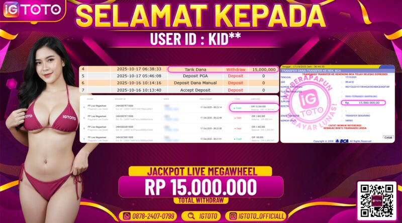 Read MoreBUKTI JACKPOT IGTOTO– Selamat kepada member setia IGTOTO ID : KID** dengan Jackpot Rp. 15.000.000,- pada permain slot games igtoto .