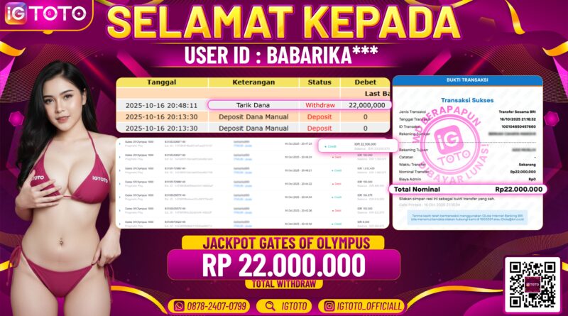 Read MoreBUKTI JACKPOT IGTOTO– Selamat kepada member setia IGTOTO ID : BABINKA*** dengan Jackpot Rp. 22.000.000,- pada permain slot games igtoto .