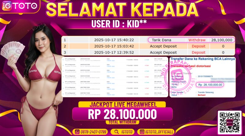 Read MoreBUKTI JACKPOT IGTOTO– Selamat kepada member setia IGTOTO ID : KID** dengan Jackpot Rp. 28.100.000,- pada permain slot games igtoto .