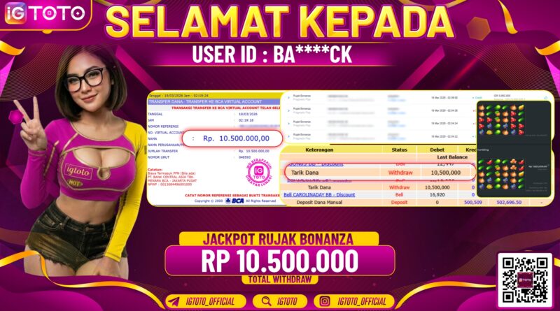 BUKTI JACKPOT IGTOTO– Selamat kepada member setia IGTOTO ID : BA****CK dengan Jackpot Rp. 10.500.000,- pada permain slot games igtoto . Pencairan kemenangan tidak butuh waktu yang lama pasti langsung cair. Modal bermain kecil cuan jutaan rupiah, masih bingung mencari situs bandar online yang aman dan terpercaya ? Solusinya hanya ada di IGTOTO bossku sayang. Proses deposit dan withdraw hanya hitungan detik bahkan hitungan menit saja tanpa bertele – tele , Minimal deposit rendah hanya Rp. 5.000,- dan minimal Withdraw Rp. 25.000,- saja anda sudah bisa menikmati berbagai macam permainan cukup dengan 1 akun saja, mengapa bingung ? langsung bergabung saja dan klik link dibawah ini untuk akses lebih lancar dan mudah :