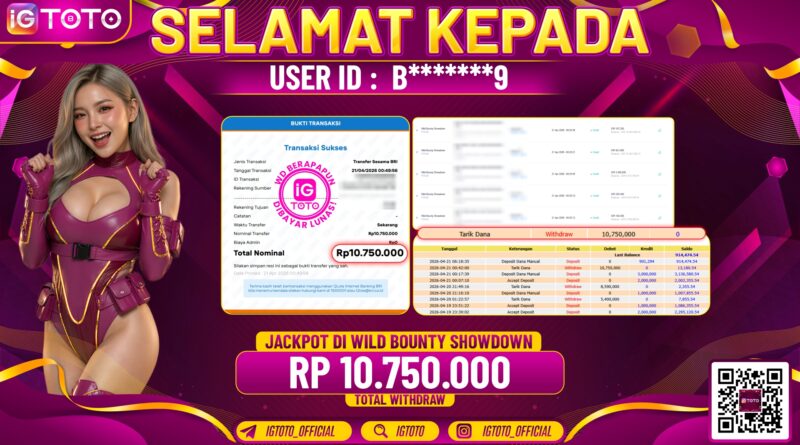 BUKTI JACKPOT IGTOTO– Selamat kepada member setia IGTOTO ID : B*******9 dengan Jackpot Rp. 10.750.000,- pada permain slot games igtoto . Pencairan kemenangan tidak butuh waktu yang lama pasti langsung cair. Modal bermain kecil cuan jutaan rupiah, masih bingung mencari situs bandar online yang aman dan terpercaya ? Solusinya hanya ada di IGTOTO bossku sayang. Proses deposit dan withdraw hanya hitungan detik bahkan hitungan menit saja tanpa bertele – tele , Minimal deposit rendah hanya Rp. 5.000,- dan minimal Withdraw Rp. 25.000,- saja anda sudah bisa menikmati berbagai macam permainan cukup dengan 1 akun saja, mengapa bingung ? langsung bergabung saja dan klik link dibawah ini untuk akses lebih lancar dan mudah :